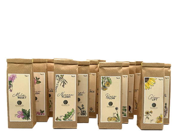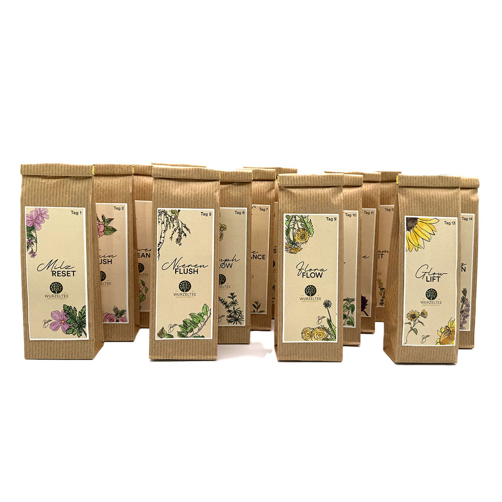 Von der Wurzel bis zur Blüte: Unser Detox-Set vereint 14 handverlesene Kräuterkompositionen – jede mit ihrem eigenen Rhythmus, ihrer eigenen Wirkung, ihrem eigenen Ursprung.